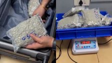 2,5 kg mutmaßliches Cannabis in einem geheimen doppelten Boden eines Koffers versteckt