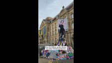 Anti-Fast-Fashion-Kleiderstatue von Greenpeace in Karlsruhe am Europaplatz