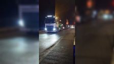 Hier kommt das 80 Tonnen schwere Bohrgerät über die Sebastian-Gruber-Brücke in Gernsbach-Obertsrot