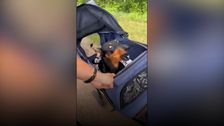 Gelähmter Dackel genießt Spaziergänge in seinem Kinderwagen