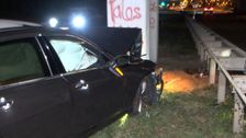 Eisglätte? BMW prallt in Mannheim gegen Brückenpfeiler und verfehlt nur knapp Blitzeranhänger