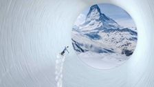 Er sieht aus wie aus einem Science-Fiction-Film: Ein riesiger mit echtem Schnee gefüllter, rotierender Tunnel verspricht eine endlose Piste.