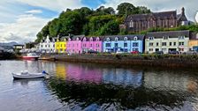 Schweben Sie mit diesem atemberaubenden Drohnenvideo über dem malerischen Hafen von Portree, der lebhaften Hauptstadt der schottischen Isle of Skye. Erleben Sie das Wahrzeichen der Stadt: die sichelförmige Ansammlung bunter Fischerhäuser und Wohnhäuser, die die geschützte Bucht säumen.
