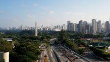 Erleben Sie den Ibirapuera-Park in São Paulo, Brasilien, aus der Vogelperspektive – das grüne Herz der größten Stadt Südamerikas. Bewundern Sie die immense Größe des Parks und seine wichtige Rolle als ruhige, natürliche Oase inmitten der umliegenden Großstadt. Gleiten Sie über die ikonische Architektur der Moderne, darunter Bauwerke von Oscar Niemeyer, und das friedliche Wasser des Hauptsees.