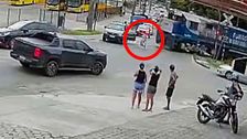 Eine Autofahrerin entkam im Süden Brasiliens nur knapp einer Katastrophe: Ihr Auto blieb auf einem Bahnübergang stehen, als sich gerade ein Zug näherte. Überwachungskameras hielten die bangen Sekunden fest.