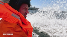 Alex Kumptner denk, sein Kollege Frank Rosin sei über Bord der "Korvette Magdeburg" gegangen. In einem Speedboot startet die Rettungsaktion und Alexander ist ganz vorne mit dabei.
