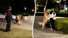 Zwei Hunde in Qingdao, China, wurden dabei gefilmt, wie sie aufrecht gingen und sich wie Tanzpartner bewegten, was die Zuschauer erfreute.