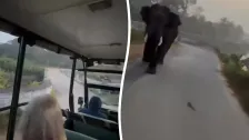 Touristen in der Nähe des Bhadra Ranganatha Swamy-Tempels in Karnataka entkamen unverletzt, als ein Elefant ihren Jeep stürmte. Die Guides wiesen die Besucher darauf hin, Abstand zu wilden Tieren zu halten.