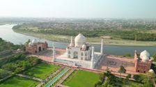 Erleben Sie die legendäre Stadt Agra in Indien aus der Vogelperspektive mit diesem atemberaubenden Drohnenvideo. Bestaunen Sie die unvergleichliche, symmetrische Schönheit des Taj Mahal, eines UNESCO-Weltkulturerbes, dessen weißes Marmormausoleum majestätisch aus dem Ufer des Yamuna-Flusses emporragt. Gleiten Sie über die imposanten roten Sandsteinmauern des Agra Forts und entdecken Sie die gewaltigen Ausmaße dieser kaiserlichen Residenz der Moguln.