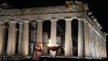 Olympische Flamme erleuchtet den Parthenon, dann zu Winterspielen in Mailand-Cortina