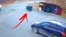 Seltsamer Moment auf einer ruhigen Straße in Korsakow in Russland: Eine große Mülltonne setzte sich plötzlich von allein in Bewegung – die schräge Szene sorgte für Rätsel.