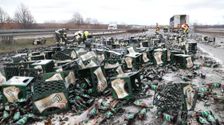 Unfall auf der B93: Lastwagen verliert 400 Bierkisten
