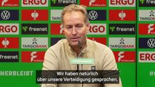 Werkself-Coach Kasper Hjulmand spricht nach dem Pokalsieg im Achtelfinale gegen Dortmund über die engen Abseitssituationen und die Defensivprinzipien, die den Leverkusenern zuletzt gefehlt hatten.