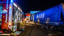 „Trümmerfeld“ auf der A6 bei Nürnberg: Lkw und Pkw kollidiert und verkeilt