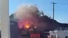 Eine Gasexplosion hat ein Haus in Kalifornien komplett zerstört und weitere beschädigt. Eine Haustürkamera filmte die Explosion mit.