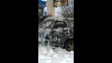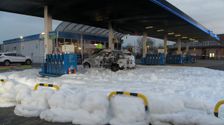 Schaum-Meer nach Löscharbeiten: Auto fängt an Tankstelle Feuer