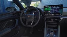 Die Bremsleistung ist ebenso fein abgestimmt: Akebono-Bremsen mit 6-Kolben-Bremssätteln bieten der Person am Steuer in jeder Situation ein Höchstmaß an Sicherheit und Präzision. Das immersive Erlebnis wird durch die vier kupferfarbenen Endrohre des Fahrzeugs noch verstärkt, die den typischen emotionalen Sound eines CUPRA liefern – einen eindrucksvollen Soundtrack, der den dynamischen Charakter des Autos widerspiegelt. Der Innenraum unterstreicht die designorientierte Philosophie von CUPRA: Dunkle Chromoberflächen – darunter auch die Satellitentasten – sorgen für eine dezente Eleganz, während mit Stoff ausgekleidete Radkästen die Schalldämmung subtil verbessern und so ein noch komfortableres Fahrerlebnis bewirken.