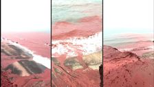 Auf der iranischen Insel Hormus kommt es bei starken Regenfällen zu einem verblüffenden Naturphänomen: Mineralien im Boden färben das Wasser rot.