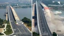 Die alte Ganjiang-Brücke in der chinesischen Provinz Jiangxi wurde kontrolliert gesprengt. Das Besondere: Die Sprengung fand in unmittelbarer Nähe zum neuen Brückenbauwerk statt.