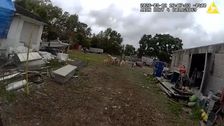 Ein Hilfssheriff trieb am 12. März 2026 in Brandon, Florida, USA, entlaufene Ziegen zusammen, indem er wie ein Hund bellte. Der Vorfall ereignete sich, nachdem der Polizist zu einem Einsatz wegen freilaufender Nutztiere in der Gegend gerufen worden war. Die Behörden witzelten, dass er „die Sirenen übersprungen und gleich Befehle gebellt“ habe. Kredit: Hillsborough County Sheriff's Office /TMX