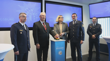 Joachim Herrmann hat die neue polizeiliche Videoüberwachung am Augsburger Hauptbahnhof offiziell in Betrieb genommen.