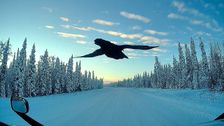 Ein LKW-Fahrer in Yukon in Kanada bekam eine besondere Eskorte: Ein Rabe flog direkt vor dem Laster her und lotste den Mann sicher zu einem Rastplatz. Laut dem Fahrer sind Raben vor Ort bekannt dafür, Trucks zu begleiten.