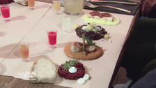 Das vegane 4-Gänge-Menü mit zwei Vorspeisen und zwei Hauptspeisen wird direkt am Tisch serviert – inklusive Show-Einlage. Das besondere Servier- und Geschmackserlebnis zaubert der zunächst skeptischen Konkurrenz ein zufriedenes Lächeln ins Gesicht.