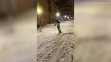 Die Schneemassen verwandelten den Nürnberger Burgberg in der Nacht von Sonntag auf Montag kurzum zur Weltcup-Abfahrt in Kitzbühel. Drei junge Nürnberger witterten eine einmalige Chance und fuhren mit Skiern durch die Altstadt.