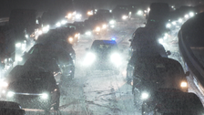 Schneechaos auf A72: Zwei Lkw kollidieren und blockieren Fahrbahn