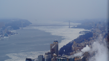 Nach dem heftigen Wintersturm in den USA ist der Schiffsverkehr in New York weitgehend eingestellt worden. Eis auf dem Hudson und dem East River machen den Fährbetrieb derzeit unmöglich.