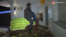 Zeitungszusteller trotzt Glätte auf dem Pferd