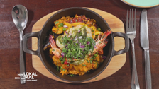 Jordan besucht Ronny in der Küche und schaut bei der Zubereitung einer valencianischen Paella zu. Mit Hähnchen, Meeresfrüchten und einer Menge Safran köchelt sie langsam in der Pfanne. Kann diese besondere Paella Jordan geschmacklich überzeugen?