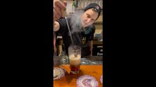 Das wahrscheinlich spektakulärste Bier beim Mini-Craft-Bier-Festival in Eberswalde: der aufgestachelte Winterbock aus der Kati Hausbrauerei. Brauerin Karin Naß erhitzt dabei ein Eisen mit einer Art Bunsenbrenner auf 600 Grad. In das Bier getaucht, karamellisiert der Restzucker, der Schaum kommt hoch und wird feinporig.