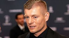Toni Kroos wird in Madrid mit dem Laureus-Sonderpreis ausgezeichnet. Anschließend muss er einen Reporter mehrfach deutlich zurückweisen.