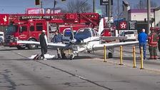 Schrecksekunde in Gainesville im US-Bundesstaat Georgia: Ein Kleinflugzeug musste wegen Triebwerksproblemen auf einer belebten Straße notlanden. Dabei kollidierte die Maschine mit drei Autos – zum Glück wurde niemand schwer verletzt.