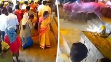 Schrecksekunden im Shri Khandoba Tempel in Pune in Indien am 8. Februar: Stiere, der gesegnet werden sollten, rissen aus und sorgten für Panik.