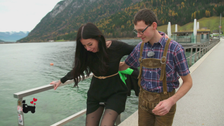 Lungauer Andreas nutzt die Gunst der Stunde, um Selina zu überraschen. Denn Andreas möchte mit ihr Einrad fahren.