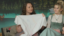 Während Manuel dem Gespräch mit seinen ehemaligen Hofdamen entspannt entgegen blickt, haben diese sich etwas ganz Besonderes ausgedacht. Gemeinsam gestalten sie für Manuel ein T-Shirt, welches sie ihm später überreichen wollen.