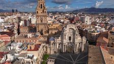 Schweben Sie mit diesen filmreifen Drohnenaufnahmen über die sonnenverwöhnte „Obstplantage Europas“ von Murcia, Spanien. Fliegen Sie durch das Herz der Stadt und bewundern Sie das architektonische Juwel der Kathedrale von Murcia mit ihrem imposanten 93 Meter hohen Glockenturm und ihrer prächtigen Barockfassade – ein Meisterwerk spanischer Bildhauerkunst, das in der mediterranen Sonne golden erstrahlt.