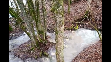 In der Nähe von Pottenstein sprudelt im Februar 2026 wieder der sogenannte "Urspring". Wasser strömt aus dem Fels und überflutet das Tal.