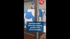 Die Funken Blau-Weiss aus Siegburg gestalten ihre Karnevalswagen mit viel Kreativität