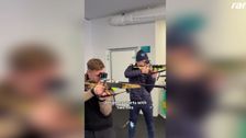 Joshua Kimmich hat einen Abstecher nach Antholz gemacht und dort mit Biathlon-Legende Johannes Thingnes Bö geschossen.