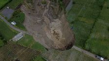 Luftaufnahmen zeigen gigantischen Krater: Riesiges Erdloch verschlingt ganze Plantagen