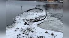 Normalerweise liegt es unter den Wellen verborgen: Durch das Niedrigwasser der Ostsee sind nun die Überreste eines 32 Meter langen Schiffes wieder an die Oberfläche gekommen.