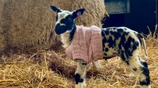 Strick-Fans in ganz Großbritannien fertigten Hunderte Pullis für Lämmer auf der Cannon Hall Farm in Barnsley. Farmer Rob Nicholson sagt, die Pullis hätten Frühchen-Lämmer während der Kältewelle im Februar warm gehalten.