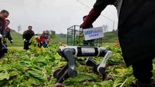 In Chongqing, China, werden Drohnen und Roboterhunde eingesetzt, um Körbe mit frisch geernteten Senf zu transportieren. Die Ernte wird zu „Zhacai“ verarbeitet, einem traditionellen chinesischen Eingelegten aus eingelegten Senfkohlknollen.