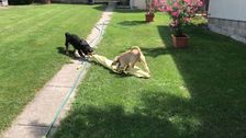 Wer gewinnt dieses witzige Duell zweier Hunde? Es geht um den gemütlichen Platz mit einer ecke...Doch die beiden sind sich nicht ganz einig, wer diesen Platz inklusive Decke erhält...