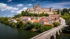 Erleben Sie Béziers, eine der ältesten Städte Frankreichs, aus der Vogelperspektive mit diesen filmreifen Drohnenaufnahmen. Hoch oben auf einem steilen Kalksteinfelsen thront die atemberaubende Silhouette der Kathedrale Saint-Nazaire, einer gotischen Festung aus dem 13. Jahrhundert, die wie ein Wächter über die Ebene des Languedoc thront.