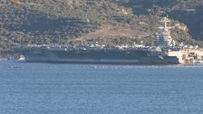 Das größte Kriegsschiff der Welt, der US-Flugzeugträger USS Gerald R. Ford, hat im Hafen von Souda Bay auf Kreta angelegt. Das Schiff ist auf den Weg in den Iran, wo der Konflikt um das Atomprogramm zu eskalieren droht.