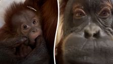 Ein herzerwärmender Moment im Memphis Zoo in Tennessee zeigt ein Orang-Utan-Baby, das sanft am Finger seiner Mutter saugt und dabei in ihrer Nähe ruht. (Credit: Memphis Zoo/TMX)